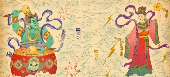 雷公电母,是中国古代神话传说中司打雷放电的二名神仙。属于一对夫妻神祇,主要负责天气变化,在下雨时助威;又有雨神、风神、云神为同事;电雷劈乃至刚至阳之威力,可制裁妖魔鬼怪。雷公是司掌雷鸣之神,属阳,故称公,又称雷师、雷神;法器是雷公凿的锤钻,传说长得鸟脸雷公嘴,背后生有一双翅膀。电母是司掌闪电之神,属阴,故称母,又称金光圣母、闪电娘娘;法器是两面闪电神镜,传说中样子比较威严一、雷公雷公,雷公名始见《楚辞》,因雷为天庭阳气,故称「公」。所传始为兽型,或似鬼,或似猪,而以猴形居多。清末黄斐然《集说诠真》