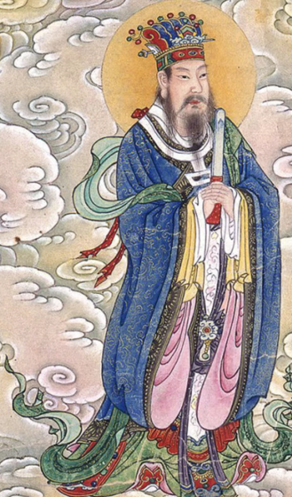 南岳大帝又称南岳圣帝、司天王、司天昭圣帝等,全称南岳衡山司天昭圣大帝安邦护国大天尊。道教称之為庆华紫光注生真君,“受炼更生天尊”、“安邦护国天尊”,掌握福禄寿纪南岳司天大化昭圣帝洞明虚廓司案真君受炼更生天尊。腊月十六是南岳圣帝的圣诞,成道是八月初一圣帝赐福一切平安吉祥!《云笈七签》描述南岳圣帝的形象是:“服朱光之表,九丹日精之冠,佩夜光天真之印,乘赤龙,领神仙七万七百人。霍山为其储君,青城山为其丈人,庐山为其使者。其所服之袍、所乘之龙为赤色,这是因为,与南方相对的颜色,正是赤色。”传说大帝身著紫