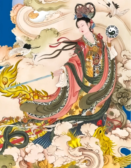 九天玄女简称玄女,俗称九天娘娘、九天玄女娘娘,原为中国上古神话中的战神,后经道门奉为女仙。虽然他在民俗信仰中的地位并不显赫,但她是一个深谙军事韬略,术法神通的正义之神,形象经常出现在古典小说之中,成为扶助英雄铲恶除暴的应命女仙,故而她在道门神仙信仰中的地位异常重要。一、法力无边的女神民间传说她是一位法力无边的女神,因除暴安民有功,玉皇大帝才敕封她为九天玄女、九天圣母。据《山海经》与《诗经》等文献记载,是轩辕黄帝之师,曾授黄帝兵符印剑,奇门术数,助其制服蚩尤,一统中华,后世有着很多古老的传说或事迹