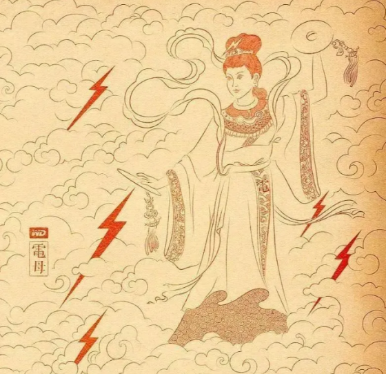 电母为道教神谱中司掌闪电的女神,电母是司掌闪电之神,属阴,故称母,又称金光圣母、闪电娘娘,电母使两面雷电镜,为雷神打人时照明;两手各执镜,闪闪发光,号为电母秀天君。根据元道法汇编《清微元降大法》和《集说诠真》,电母头戴凤冠,青发,样貌端雅;着青衣或朱衣,遍身流火光。电母信仰源于中国古代的自然崇拜,其神性最初概为男性神,是自电父衍化而来。在早期的民间信仰中,雷神兼司闪电,故雷公造型有两目如镜。后来雷公电父分职,至汉时已有电父之称。《三国志·魏志·管辂传》注引《辂别传》云:天昨檄召五星,宣布星符,剌下
