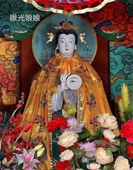 农历三月初六,恭贺眼光娘娘诞辰!眼光娘娘,神光普照,明察秋毫。病者祈之,眼清目明,心旷神怡。商贾祈之,慧眼细微,洞悉得失。仕者祈之,高瞻远瞩,心清如鉴。百姓祈之,消灾免难,心想事成。虽云遮雾障,必显光明。眼光娘娘,又称“眼光明目元君”、“眼光奶奶”、“眼光圣母”,道教尊为“眼光圣母惠照明目元君”。眼光娘娘像常端坐于束腰台座上,头戴五凤冠,缯带垂于双肩。身着圆领大袖衫,披如意云肩,衣缘处錾刻缠枝花卉及寿山福海图案,双膝上阴刻寿字纹。因此,双手捧金睛宝眼,是眼光娘娘的主要标识。另有传说:眼光娘娘与送