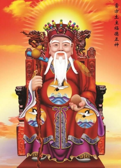 土地神又称土地公或土地爷,在道教神系中地位较低,其家族庞大,成员众多。旧时,在中国大地上,几乎到处可见石砌的、木建的大大小小的土地庙,里面供奉着土地公、土地婆。土地神源于古代的社神,社神源于远古时期人们对土地的崇拜。对社神的祭祀,早在《诗经》中就有记载。《礼经·郊特牲》中说:社,所以神地之道也,地载万物,天垂象,取财于地,取法于天,是以尊天而亲地也。《孝经援神契》中讲:社者,五土之总神。土地广博不可遍敬,故封土为社而祀之,以报功也。农历二月初二,是福德正神的宝诞,也称祭社、暖寿、做众、做牙、社日