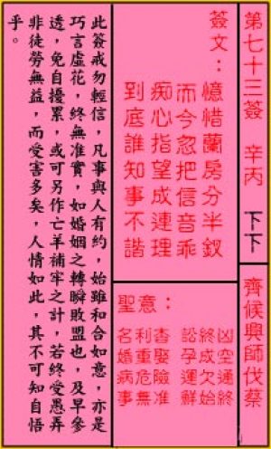 关帝灵签第七十三签,齐侯兴师伐蔡关,关帝灵签第73签解签