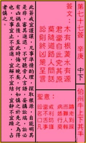 关帝灵签第七十七签,伯州牛上下其手,关帝灵签第77签解签