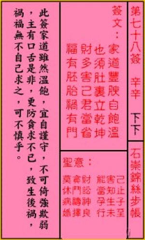 关帝灵签第七十八签,石崇锦丝步帐,关帝灵签第78签解签
