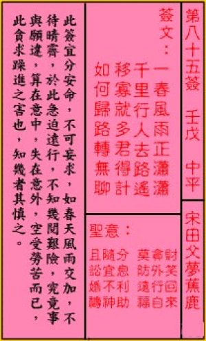 关帝灵签第八十五签,宋田父梦蕉鹿,关帝灵签第85签解签