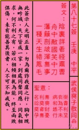 关帝灵签第八十七签,武侯与子敬同舟,关帝灵签第87签解签
