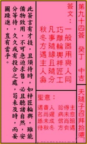 关帝灵签第九十四签,天随子召拜拾遗,关帝灵签第94签解签