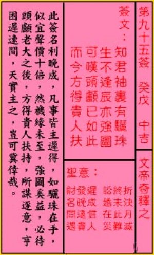 关帝灵签第九十五签,文帝奇释之,关帝灵签第95签解签