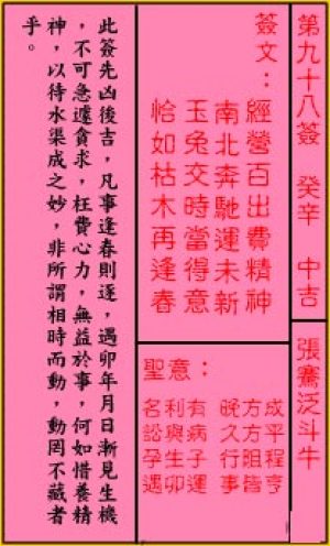 关帝灵签第九十八签,张骞泛斗牛,关帝灵签第98签解签
