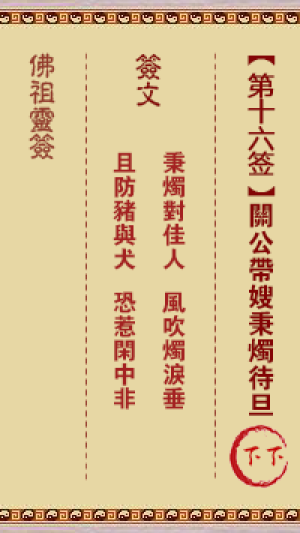 佛祖灵签第十六签,关公秉烛待旦,佛祖灵签第16签解签
