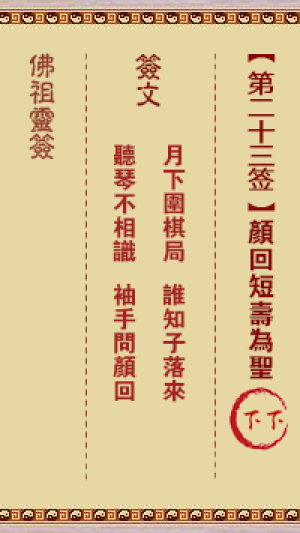 佛祖灵签第二十三签,颜回短寿为圣,佛祖灵签第23签解签