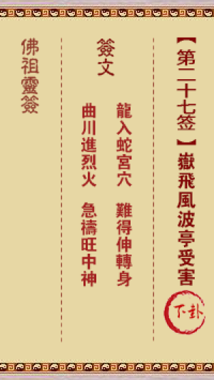 佛祖灵签第二十七签,岳飞风波亭受害,佛祖灵签第27签解签