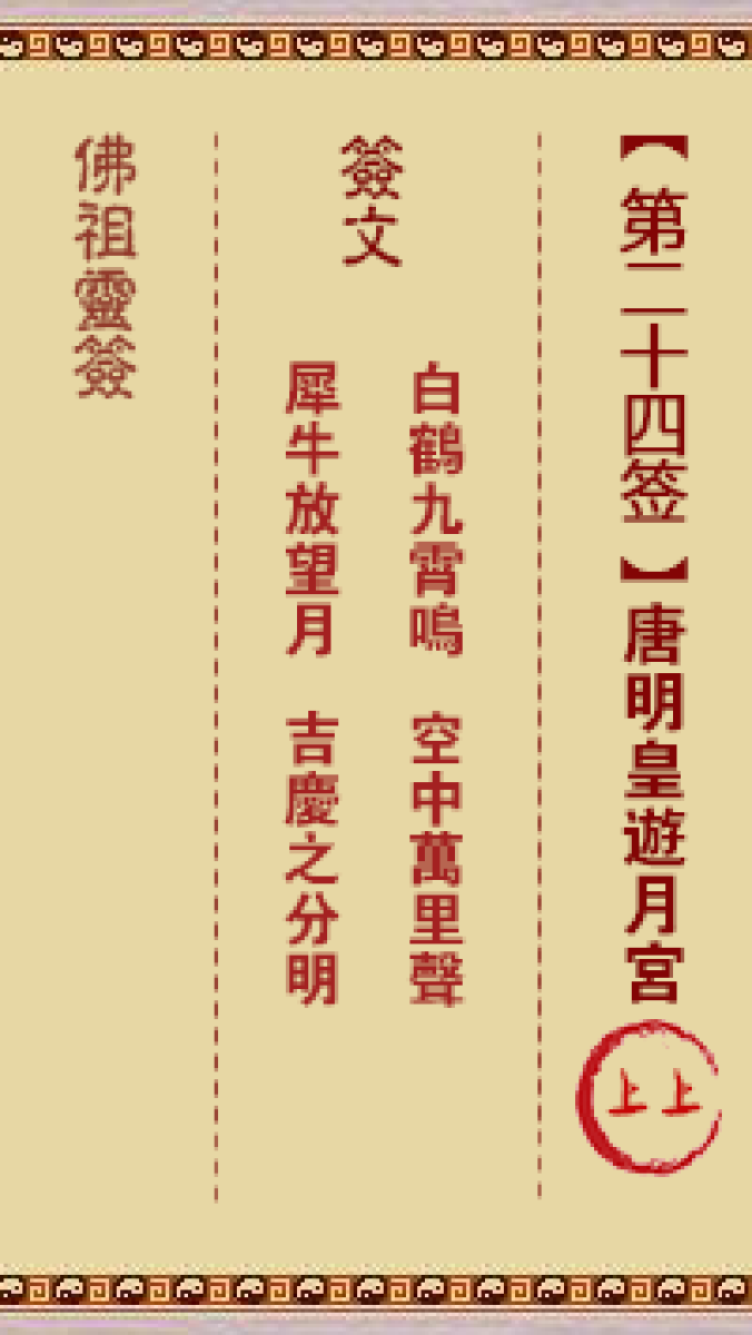 佛祖灵签第二十四签: 唐明皇游月宫 上上签佛祖灵签: 签诗白鹤九霄鸣,空中万 ...