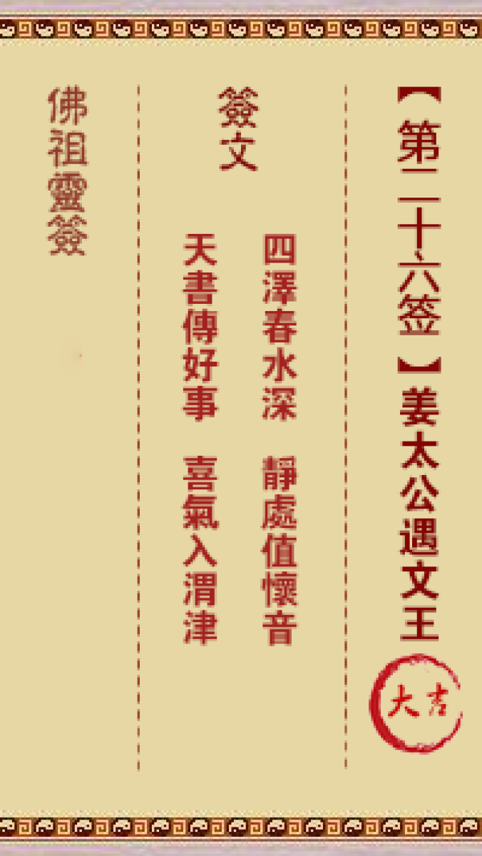 佛祖灵签第二十六签: 姜太公遇文王 大吉签佛祖灵签: 签诗四泽春水深,静处值 ...
