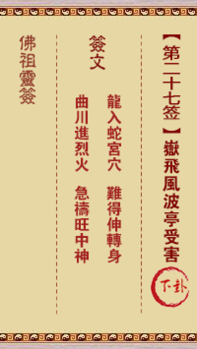 佛祖灵签第二十七签: 岳飞风波亭受害 中下签佛祖灵签: 签诗龙入蛇宫穴,难得 ...