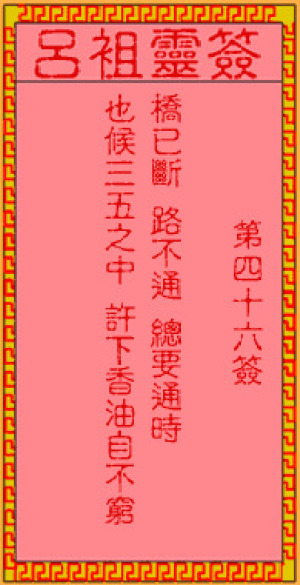 吕祖灵签第四十六签,古人蔡中兴修建洛阳桥,吕祖灵签第46签解签