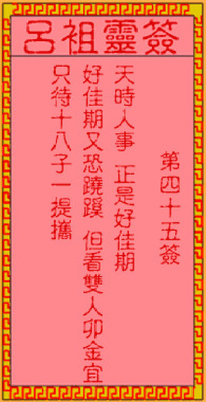 吕祖灵签第四十五签,古人李龙寻妻,吕祖灵签第45签解签
