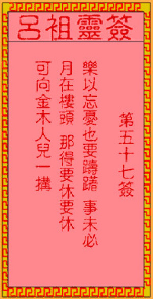 吕祖灵签第五十七签,古人金星戏宝儿,吕祖灵签第57签解签