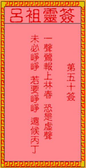 吕祖灵签第五十签,古人崔莺小姐,吕祖灵签第50签解签