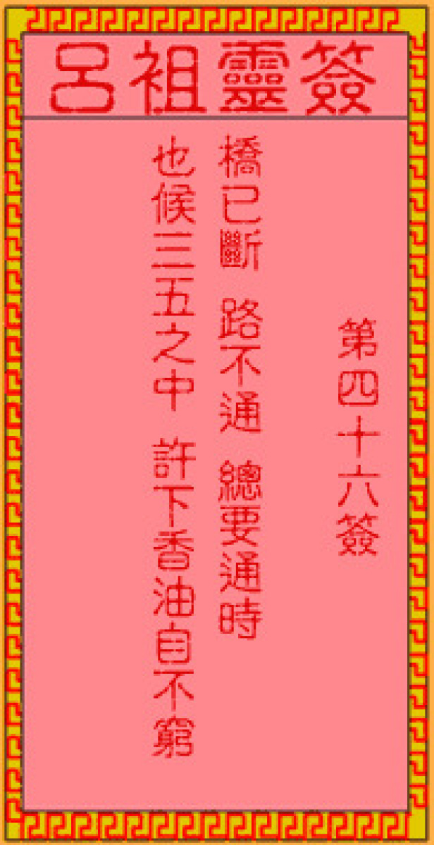 吕祖灵签第四十六签解签诗曰 身离渡口箭离弦,人在前途眼望穿;莫怨行人归棹 ...