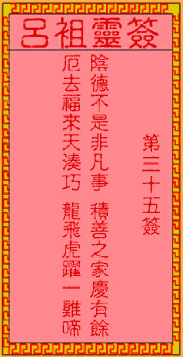 吕祖灵签第三十五签解签诗曰 门内起干戈,亲仇两不和;朱衣临日月,始觉笑呵 ...