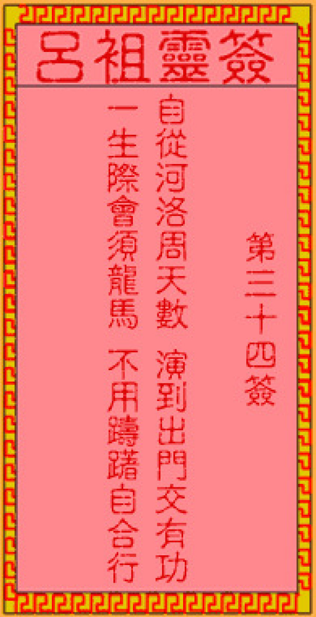 吕祖灵签第三十四签解签诗曰 一二三四五六七,八九相乘数乃毕;老阳未变不能 ...