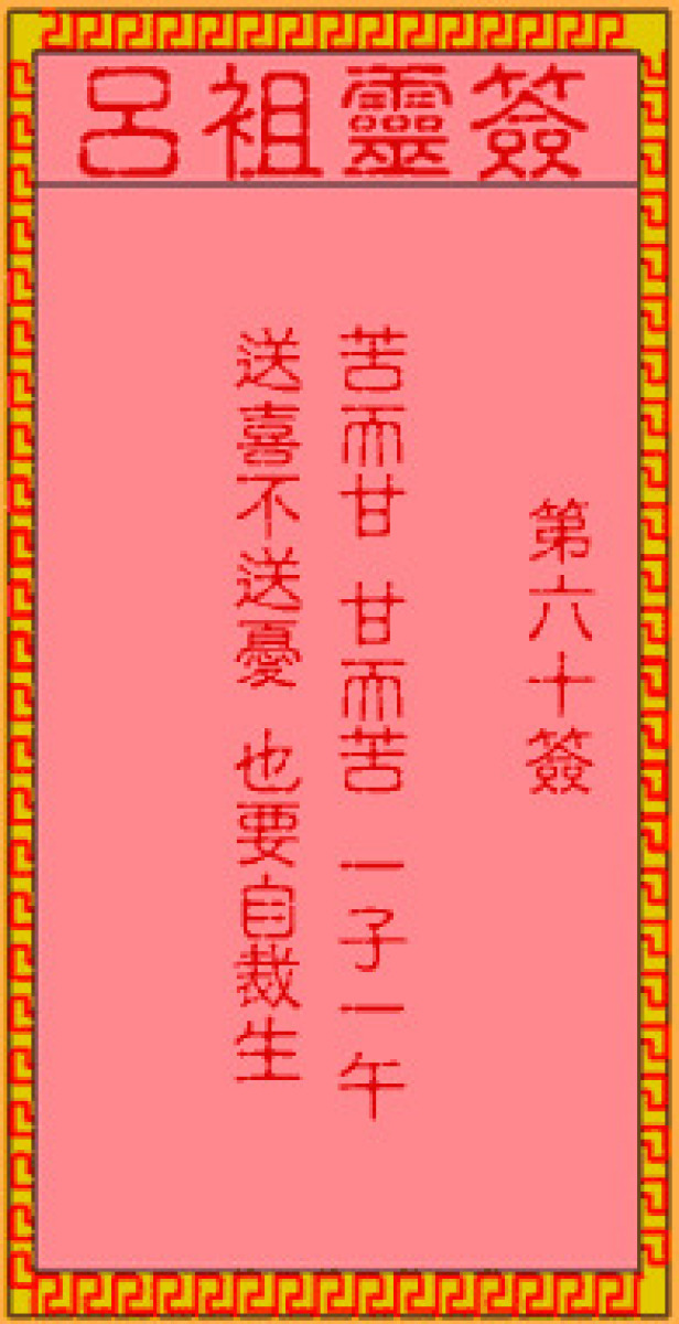 吕祖灵签为吕祖祠庙求签、占卜之用,可以问卜流年,婚姻,疾病,求财,功名 ...