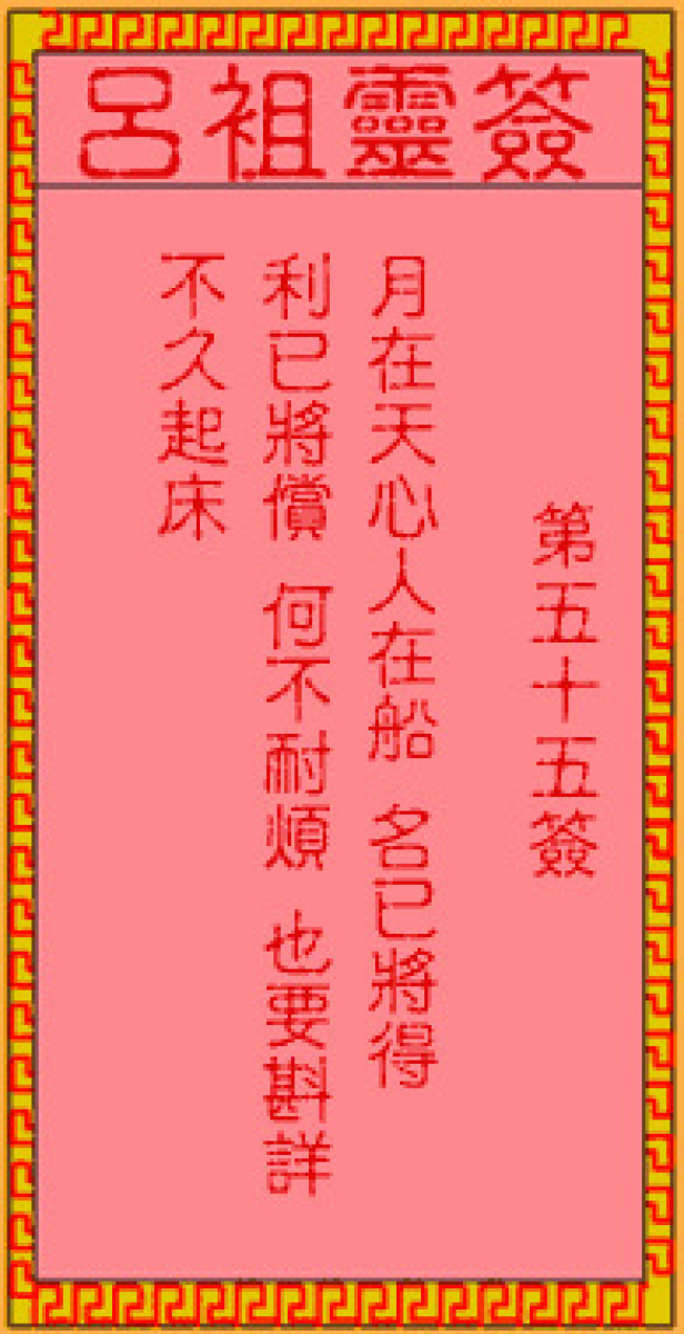 吕祖灵签第五十五签解签诗曰 富向勤中得,贵从修里来;人能躬此理,灾去福星 ...