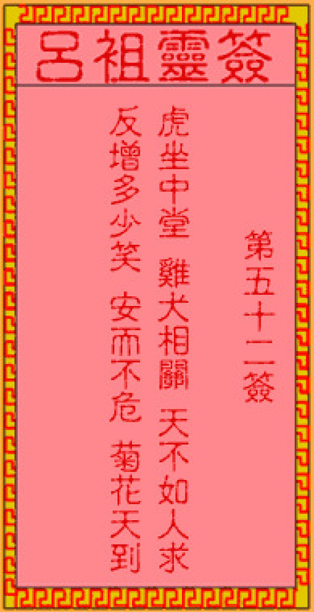 吕祖灵签第五十二签解签诗曰 天道本无私,良心各自持;倘然全昧却,后况更难 ...