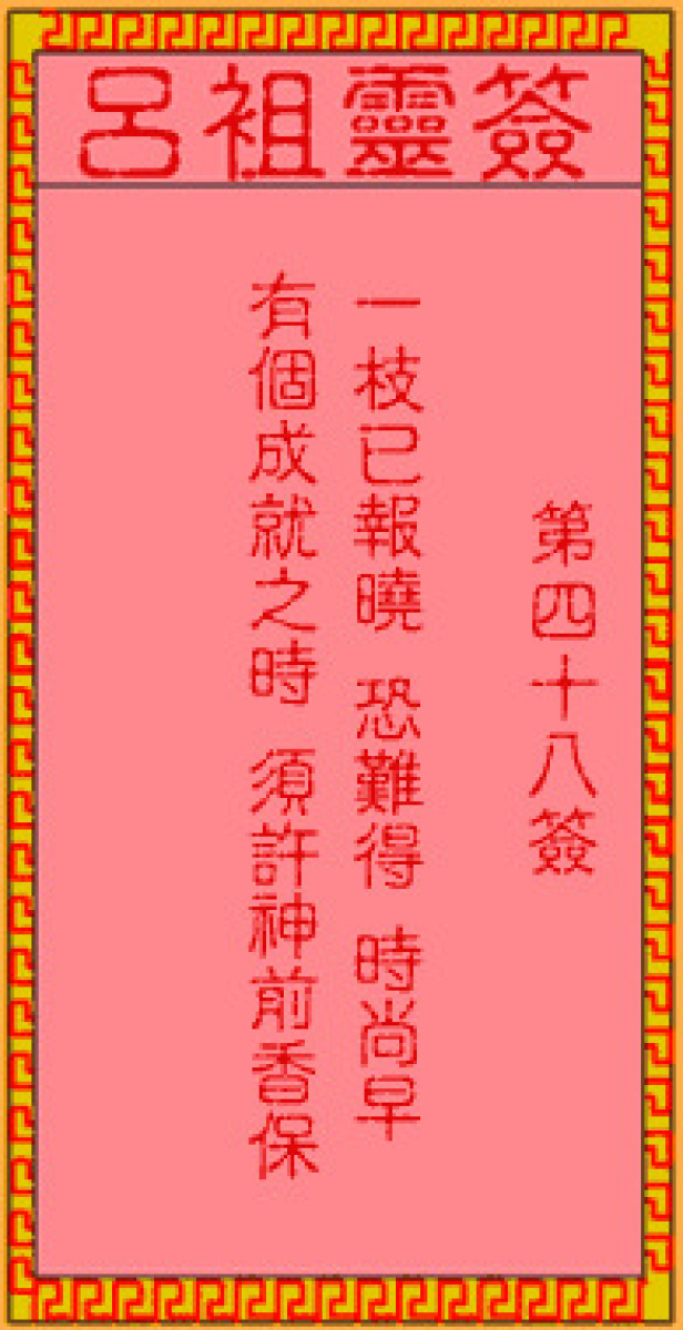 吕祖灵签第四十八签解签诗曰 运蹇时乖屡咄嗟,尚期安守秘英华;一朝拨雾天重 ...