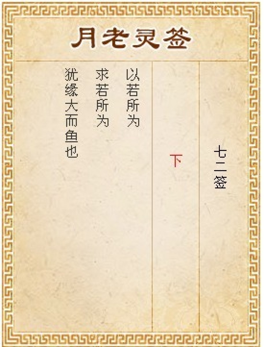 月老灵签第七十二签解签签诗以若所为,求若所为,犹缘大而鱼也。吉凶下解签 ...