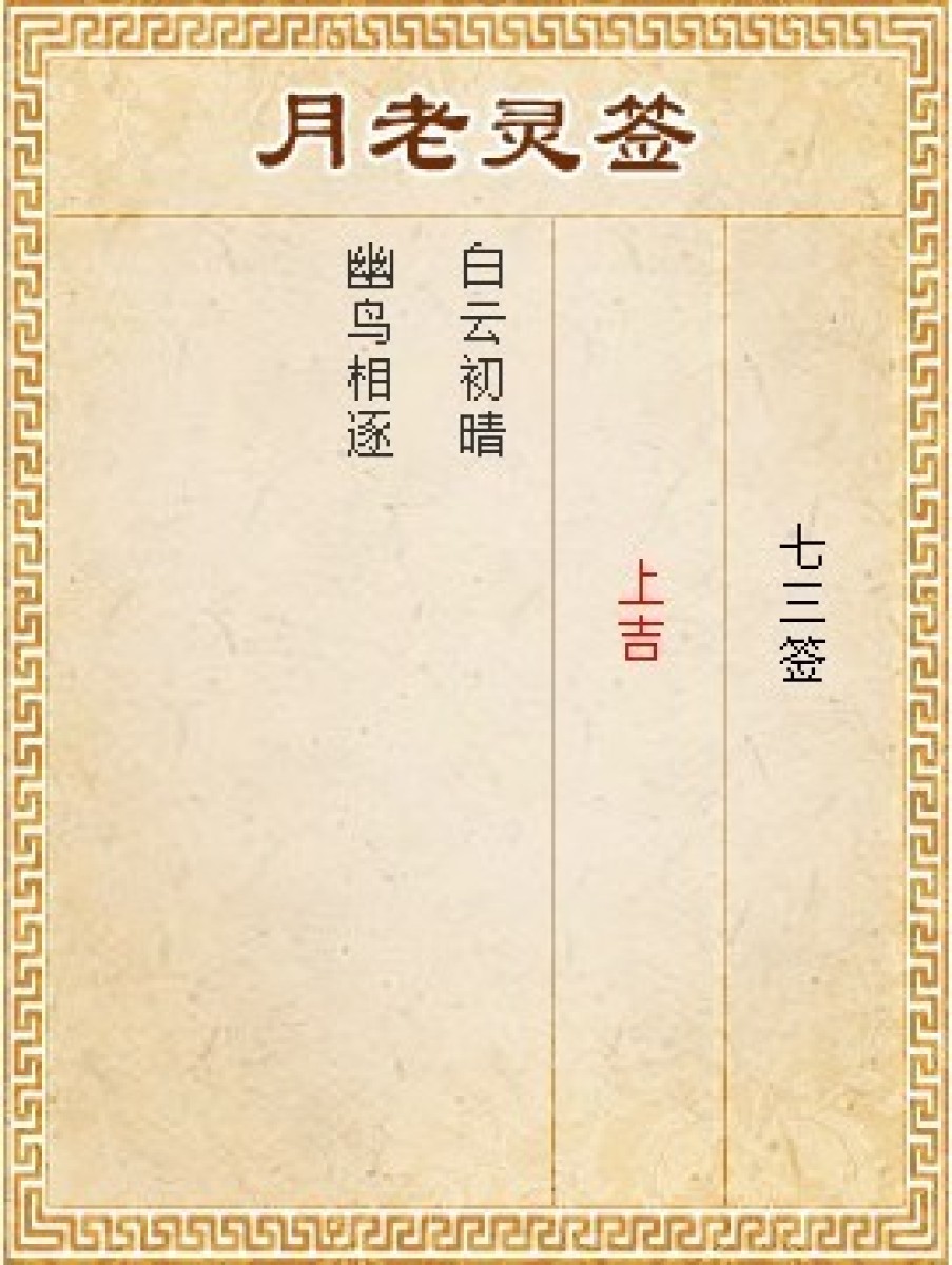 月老灵签第七十三签解签签诗白云初晴,幽鸟相逐。吉凶上吉解签如雨后初晴一 ...