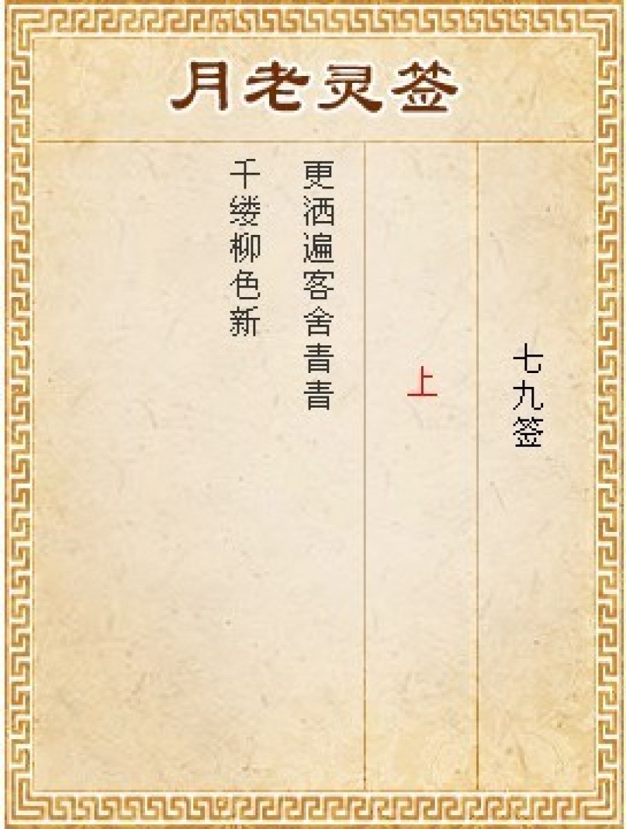 月老灵签第七十九签解签签诗更洒遍客舍青青,千缕柳色新。吉凶上解签一切都 ...