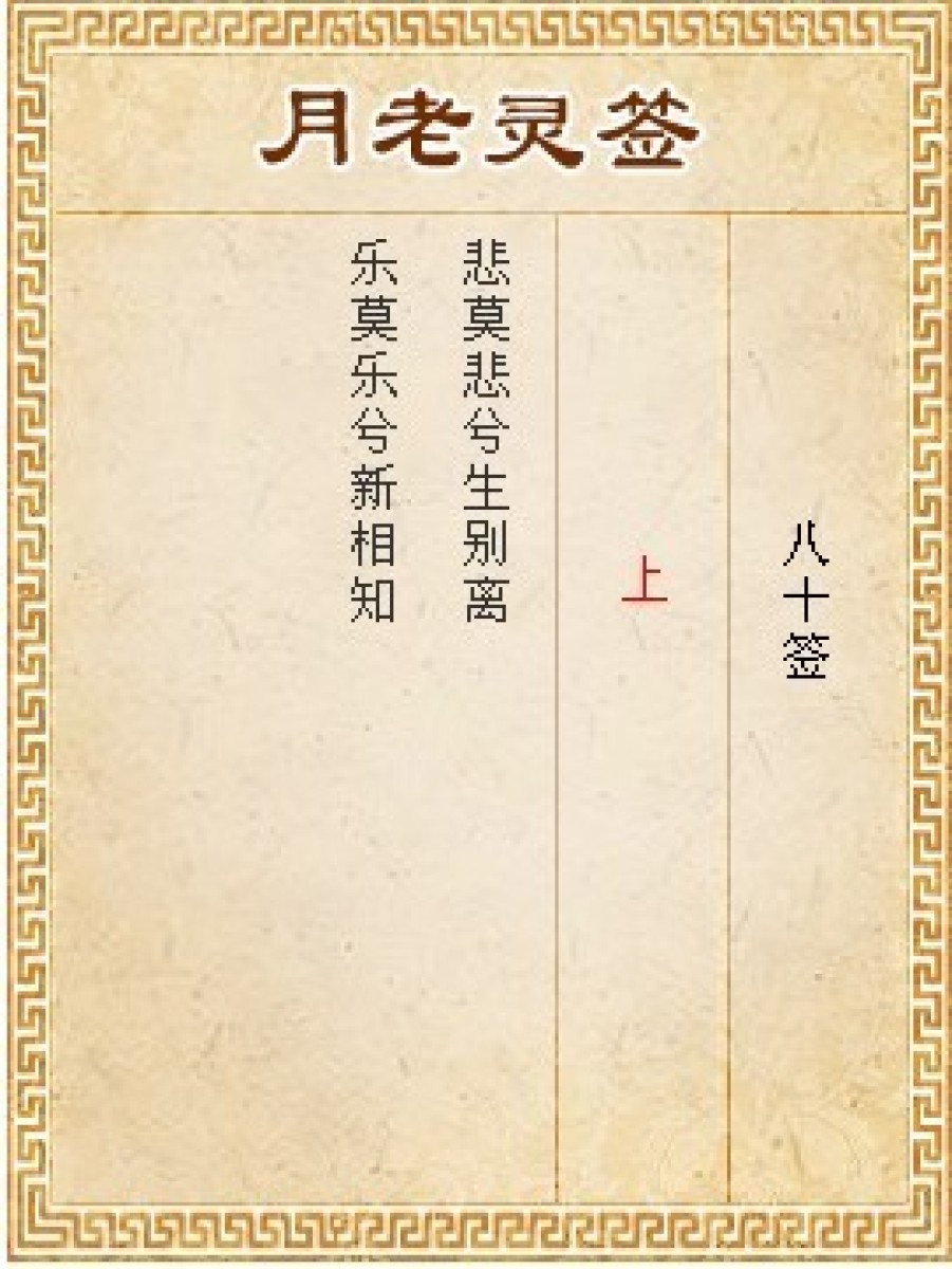 月老灵签第八十签解签签诗悲莫悲兮生别离,乐莫乐兮新相知。吉凶上解签天下 ...