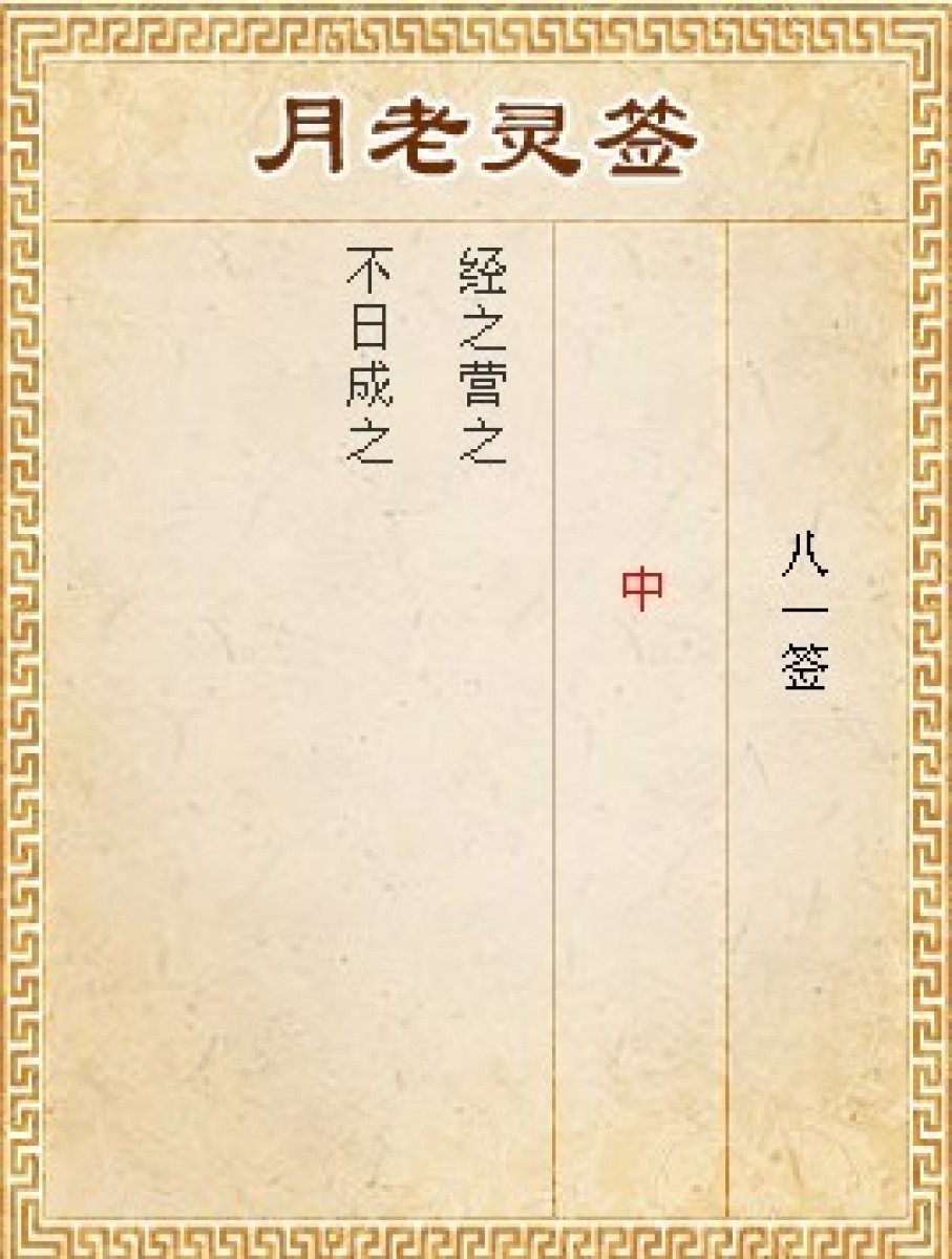 月老灵签第八十一签解签签诗经之营之,不日成之。吉凶中解签日日下功夫经营 ...