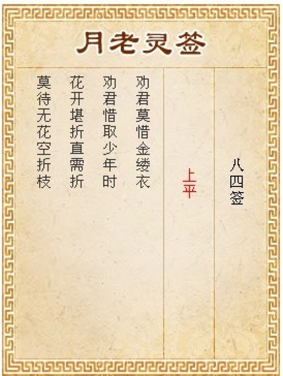 月老灵签第八十四签解签签诗劝君莫惜金缕衣,劝君惜取少年时,花开堪折直需 ...