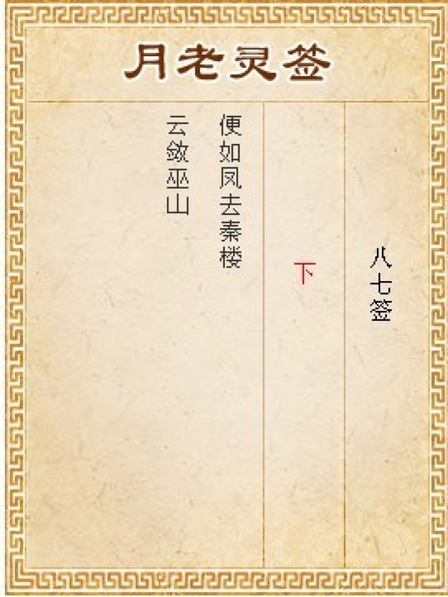 月老灵签第八十七签解签签诗便如凤去秦楼,云敛巫山。吉凶下解签有缘无分, ...