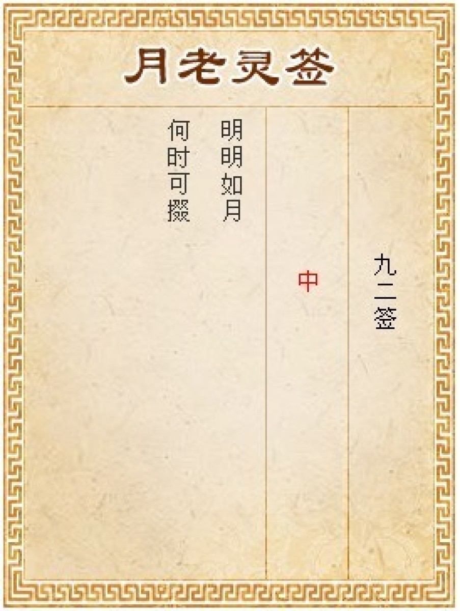 月老灵签第九十二签解签签诗明明如月,何时可掇。吉凶中解签要面对现实,水 ...