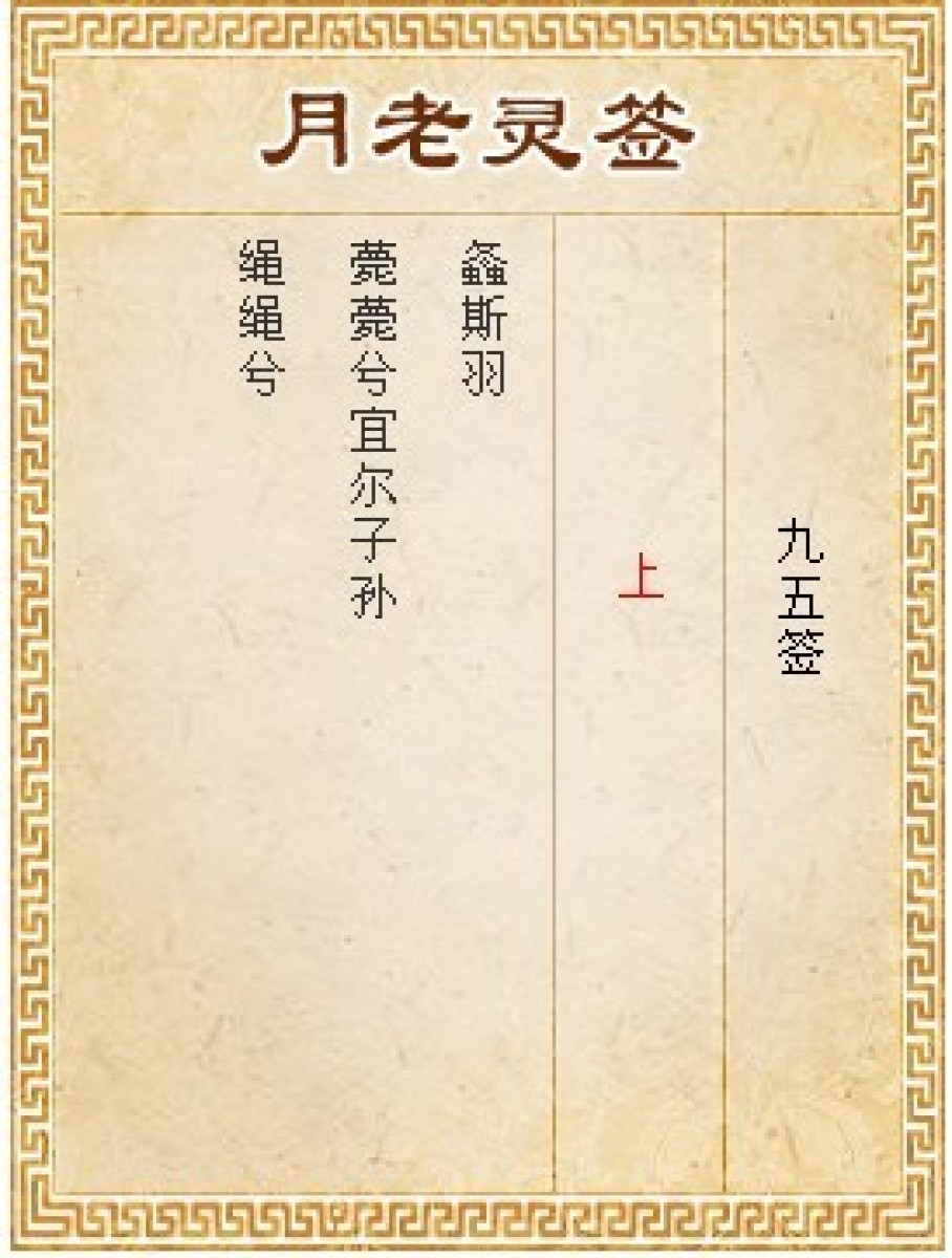 月老灵签第九十五签解签签诗螽斯羽,薨薨兮。吉凶下解签子孙繁荣兴旺,婚姻 ...