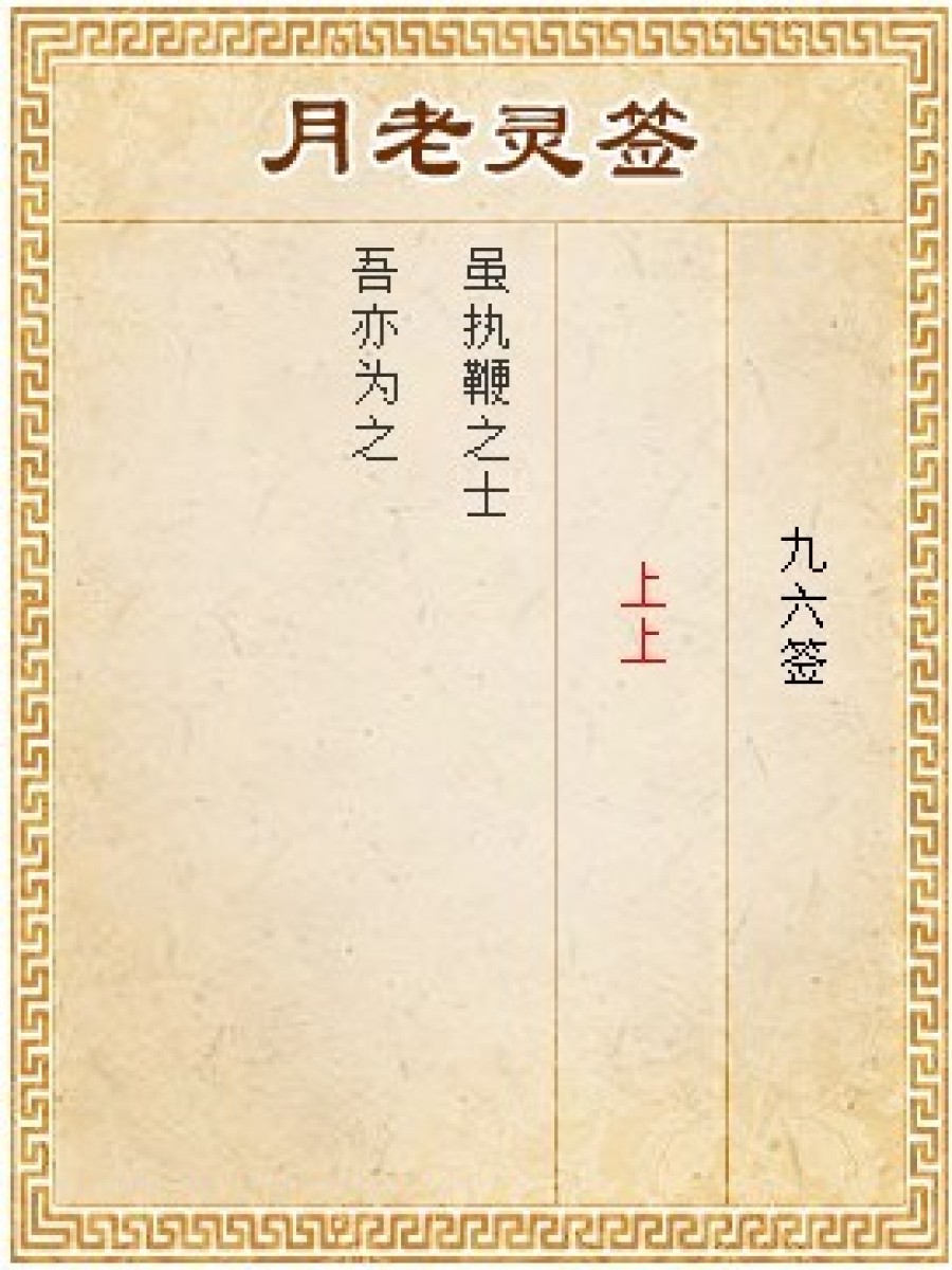 月老灵签第九十六签解签签诗虽执鞭之士,吾亦为之。吉凶上上解签对于合适之 ...