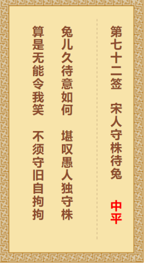 黄大仙灵签第七十二签,宋人守株待兔,黄大仙灵签第72签解签