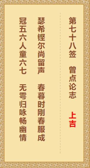 黄大仙灵签第七十八签,曾点论志,黄大仙灵签第78签解签
