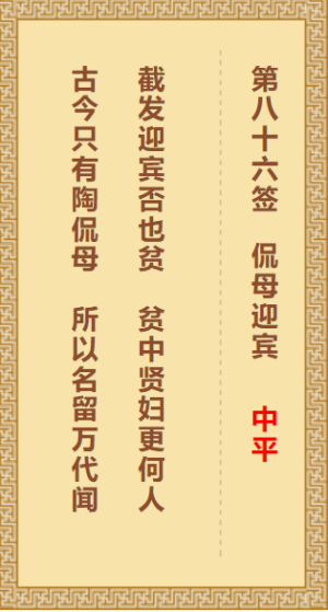 黄大仙灵签第八十六签,侃母迎宾,黄大仙灵签第86签解签