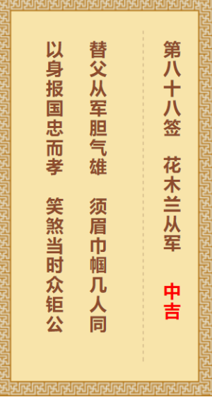 黄大仙灵签第八十八签,花木兰从军,黄大仙灵签第88签解签