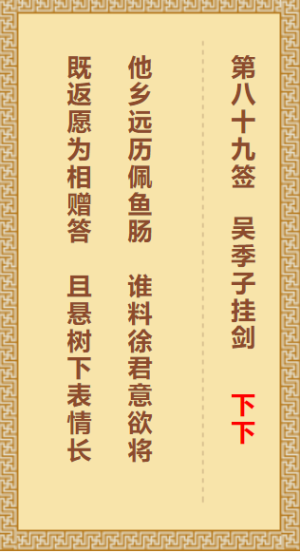 黄大仙灵签第八十九签,吴季子挂剑,黄大仙灵签第89签解签