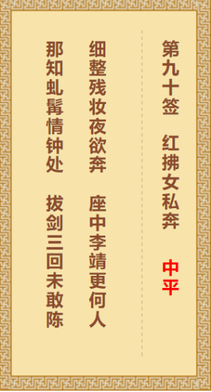 黄大仙灵签第九十签,红拂女私奔,黄大仙灵签第90签解签