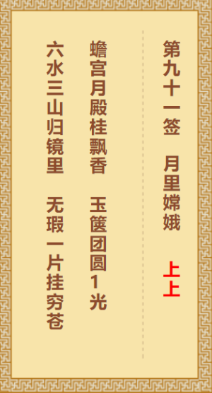 黄大仙灵签第九十一签,月里嫦娥,黄大仙灵签第91签解签