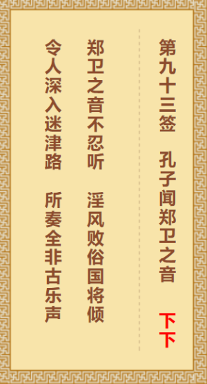 黄大仙灵签第九十三签,孔子闻郑卫之音,黄大仙灵签第93签解签
