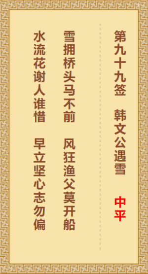 黄大仙灵签第九十九签,韩文公遇雪,黄大仙灵签第99签解签